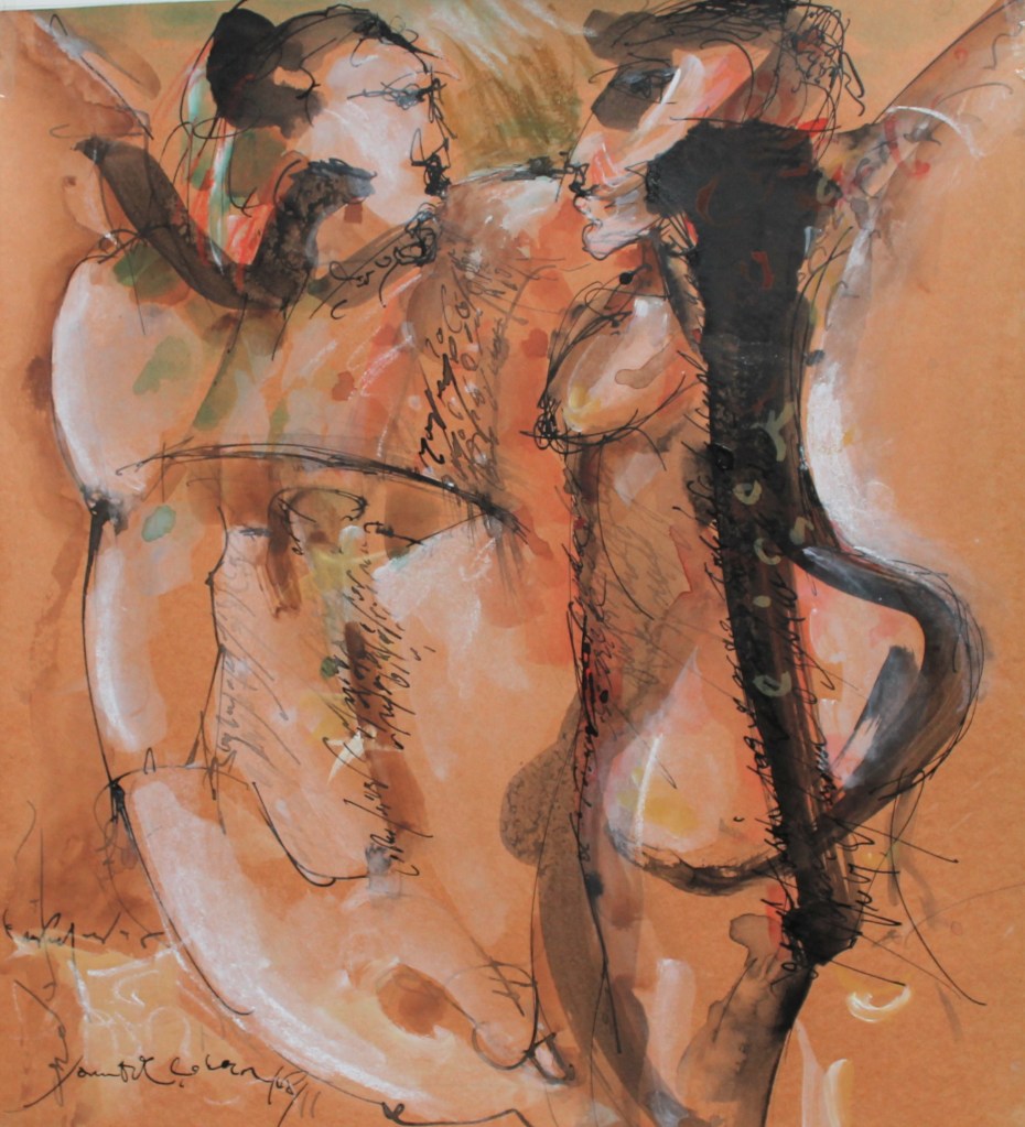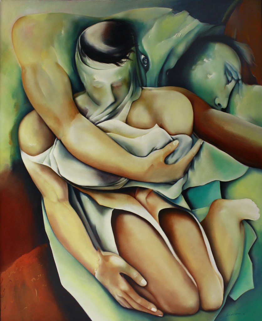 Onlar savaşır ve sevişirler. Kucak kucağa sarmaş dolaş, derileri birbirine yapışmış bu insanlar sonsuzluğa doğru erir giderler. En göze çarpıcı karakteristik özellikleri ise onların elleridir. Bir balerinin ellerini andıran figürlerle süslenmiş o eller, değişik jestlerle insana dokunur ve okşarlar. Resmin önünde durduğunuzda adeta size de kucak açar o eller.