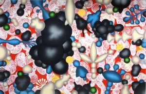 Sanatçının bez baskı, duvar kağıdı ve endüstri boyasına göz kırpan arayışları izleyici için ilk okumalara önayak olurlar. Ardından gerçeğe ilişkin fiziksel ve potansiyel, akli ve duygusal bir parametreler zinciri sökün eder. Şu dekoratif gibi duran görünüş doğunun ornamentallerinin sindirilmiş halidir aslında. Duyusal düzenin geometrik ritim suretleridir onlar, aynı zamanda elektronik dili de anıştırırlar. Devir bütünleyici gibi gözüken metalik renkli, silindirik biçimler sinir sistemi ve mikroorganizmalarla ya da galaktik biçimlerle birlikte yaşarlar.
