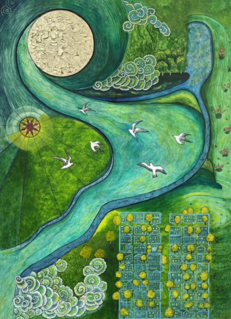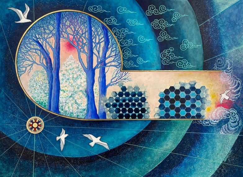 tapping her unrelenting magical muse, hope is resurrected upon a revival of kaleidoscopic horizons. Walking into her compositions is an invitation to dream. Via her illuminating imagery, the inconsolable find peace. And for those fleeting transitive moments, joy at last.